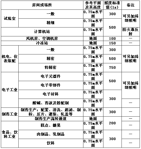 表11 部分工業(yè)建筑一般照明標準值