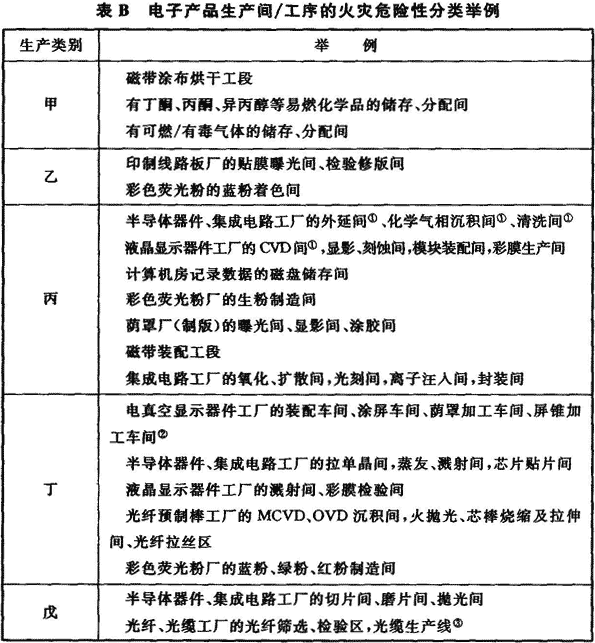 附錄B 電子產(chǎn)品生產(chǎn)間/工序的火災(zāi)危險(xiǎn)性分類(lèi)舉例