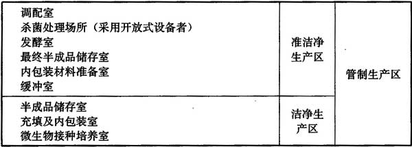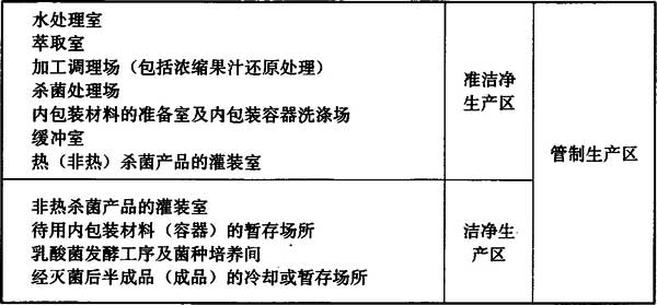 表1 一般食品生產(chǎn)車間管制生產(chǎn)區(qū)