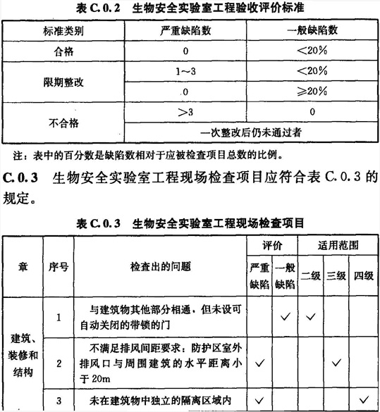 C.0.2 生物安全實驗室工程驗收評價標準應(yīng)符合表C.0.2的規(guī)定。