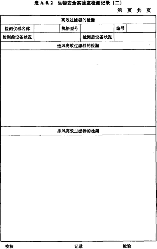 A.0.2 生物安全實驗室送風、排風高效過濾器檢漏情況應(yīng)按表A.0.2進行記錄。