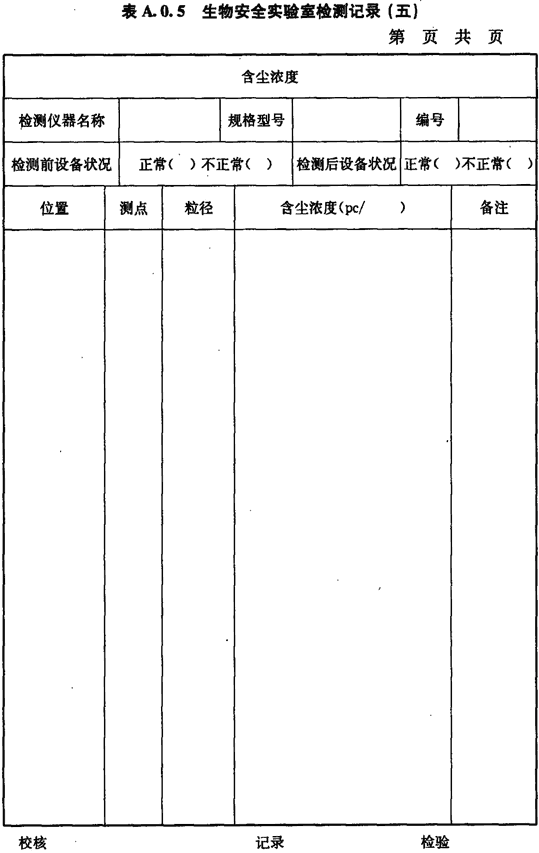 A.0.5.生物安全實驗室房間含塵濃度的檢測應(yīng)按表A.0.5進行記錄。