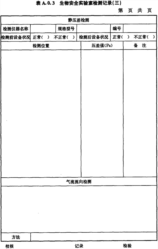A.0.3 生物安全實驗室房間靜壓差和氣流流向的檢測應(yīng)按表A.0.3進行記錄。