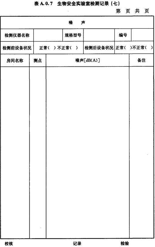 A.0.7 生物安全實驗室房間噪聲的檢測應(yīng)按表A.0.7進行記錄。