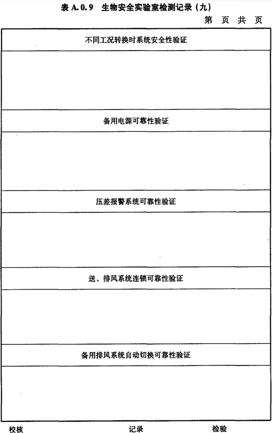 A.0.9 生物安全實驗室配電和自控系統(tǒng)的檢測應(yīng)按表A.0.9進行記錄。