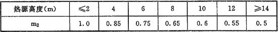 m2——根據(jù)熱源的高度,按表H.0.3-1確定的系數(shù);