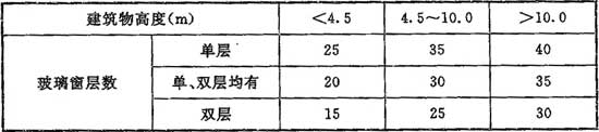 F.0.6 生產(chǎn)廠房、倉庫、公用輔助建筑物,加熱由門窗縫隙滲入室內(nèi)的冷空氣的耗熱量占圍護結(jié)構(gòu)總耗熱量的百分率可按表F.0.6確定。