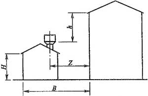 注:當(dāng)Z/h>2.3時(shí),建筑物的相關(guān)尺寸可不受限制。